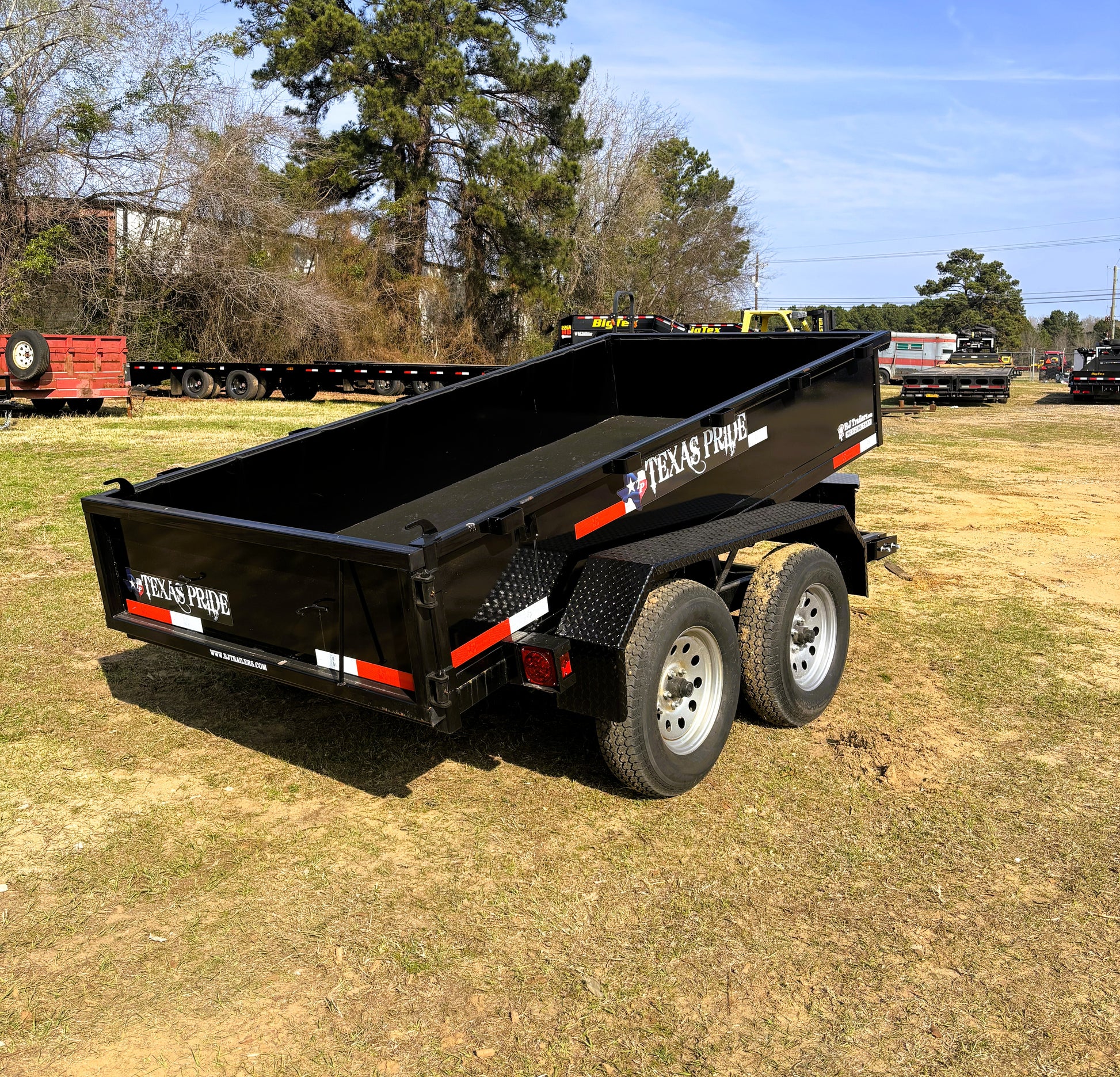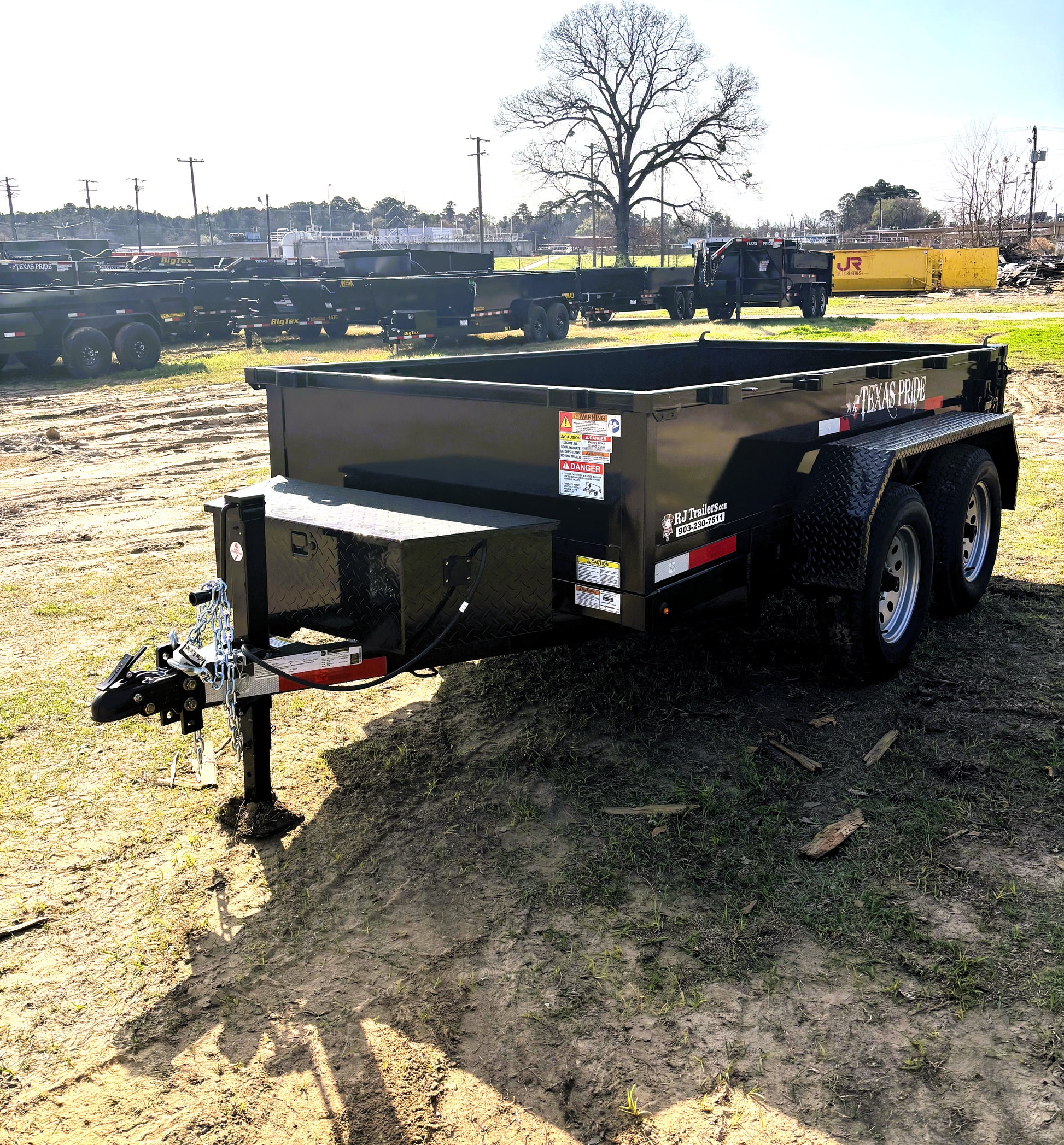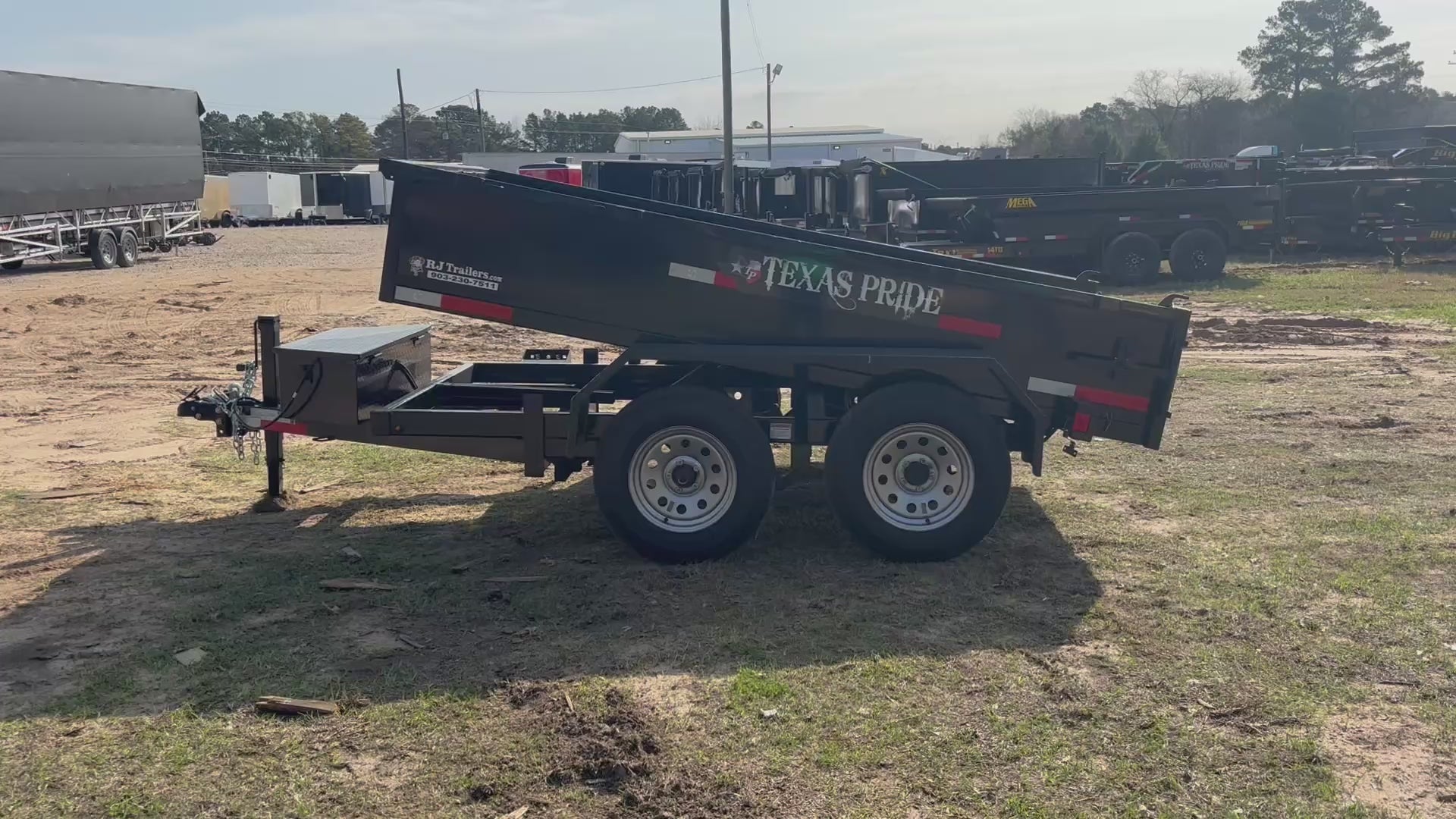 Take on tough jobs with the 2025 Texas Pride 5' x 10' Dump BP. Built for reliability and durability, this trailer features dual 3,500lb axles, 18" tall sides, making it perfect for hauling gravel, mulch, debris, or other materials. A 7K drop-leg jack provides stable hitching, ensuring safe and efficient operation on every job. Finished in sleek black, this dump trailer is ready to handle your toughest hauling tasks.